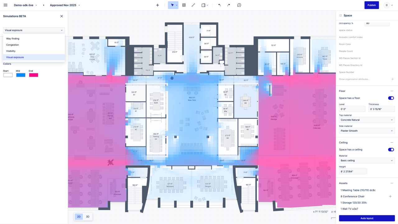 Simplify layout design iterations with automated assertions. Improve space planning efficiency by incorporating automated custom compliance checks for everything from workplace design standards to ADA building codes